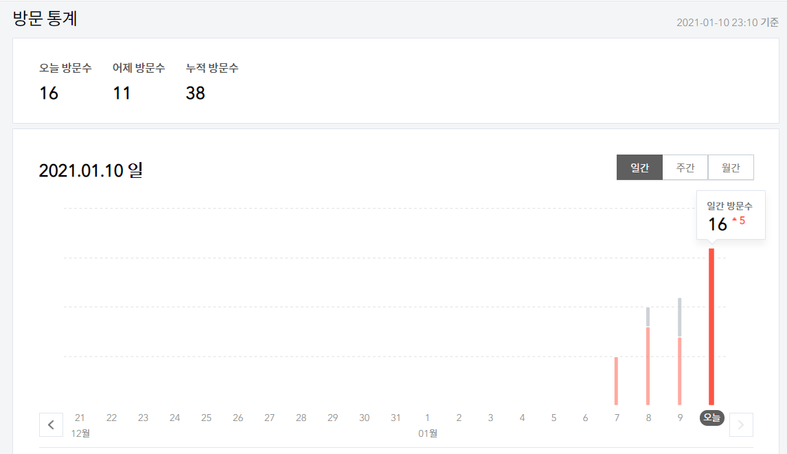오늘 저희 티스토리 방문통계를 보니 4일간 방문수는 수십 명 정도로 적긴 하나 꾸준히 상승하고 있는 중에 있어
