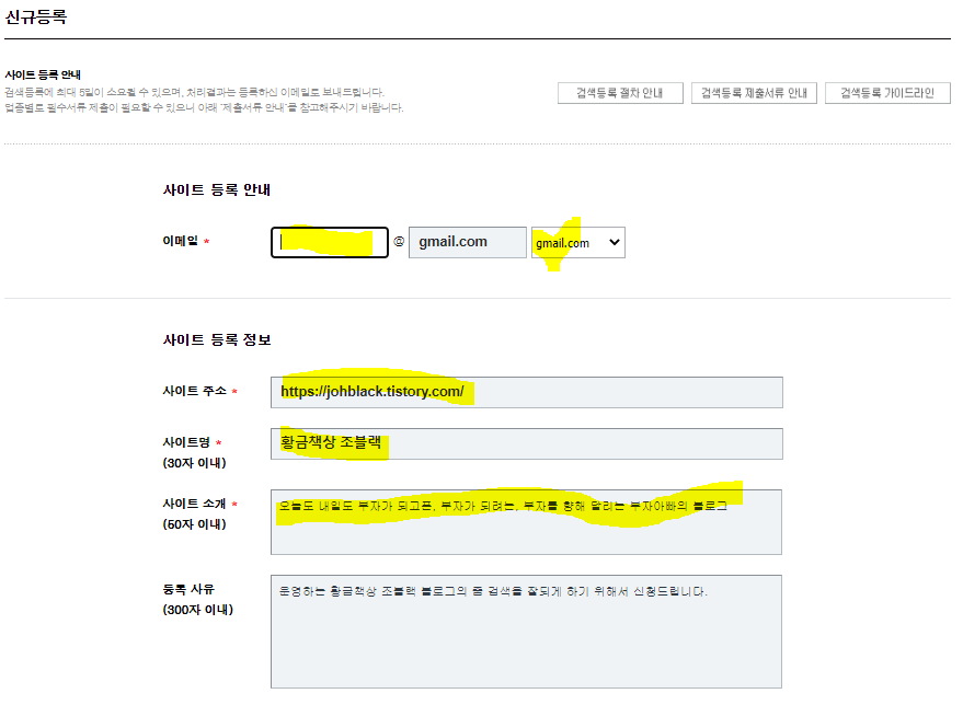 ※ 티스토리를 가입하지 않으신 분이나 티스토리 구글 및 네이버 검색 잘되게 하는 법을 찾으시는 분들은 아래 포스팅을 참조하세요.