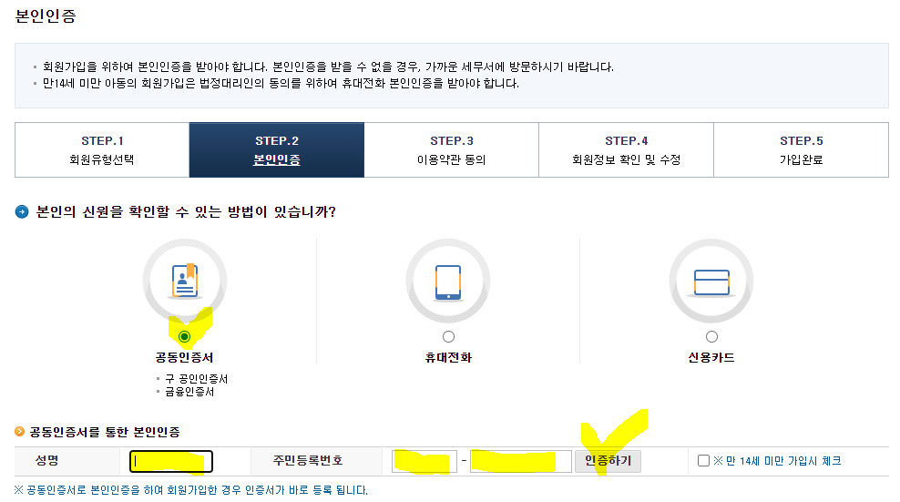 저는 아이핀은 사용하지 않기 때문에 주민등록번호로 회원가입을 하겠습니다.