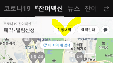 #잔여백신 바로 아래에 "신청내역" 이라고 보이는 버튼을 클릭하시면 됩니다.