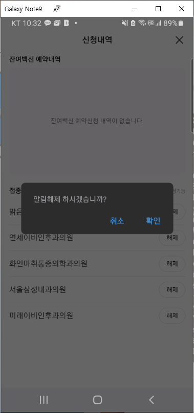 --> 알림신청 리스트에 있는 병원 우측에 "해제" 버튼을 누르시면 됩니다.