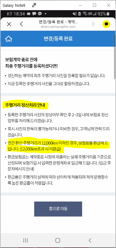 주행거리 정산처리 안내 (자동차 보험 마일리지 특약 환급)