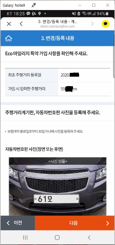 보험에 가입한 자동차 번호판 사진과 주행거리 계기판 사진 등록하기를 통해서 모든 에코 특약과 관련된 모든 변경/등록 작업이 완료되었습니다.
