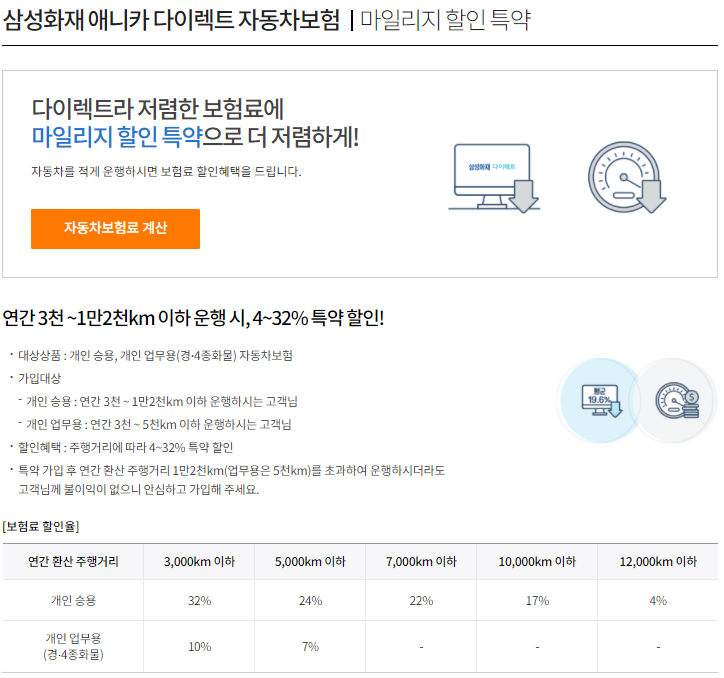 주행거리 사진을 등록해야 하는 이유는, 제가 삼성화재 애니카 다이렉트 자동차 보험 가입 시 에코 마일리지 주행거리 특약에 가입했기 때문인데요. 에코 마일리지 특약은 운전가가 달성한 주행거리에 따라 자동차 보험료 추가 할인 혜택을 4~32% 사이로 차등 있게 주고 나중에 환급해주는 식으로 운영하고 있습니다.
