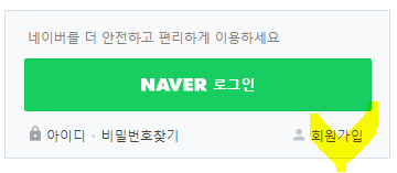 이제 네이버에서 기존 아이디는 로그아웃 했으니 "NAVER 로그인" 밑에 '회원가입'이 보일 겁니다. 이걸 마우스로 클릭합니다.