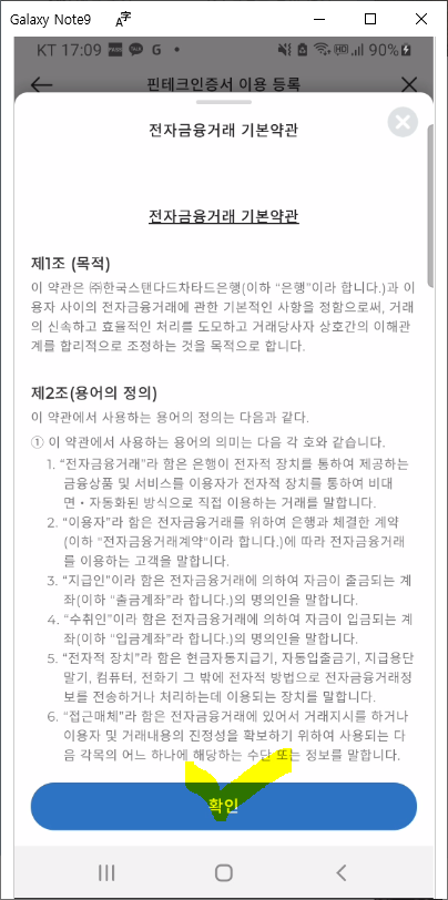 SC제일은행 핀테크 인증서 이용 등록