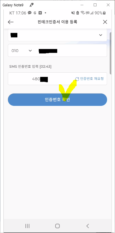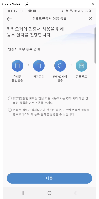 4. SC제일은행 카카오페이 인증서 등록 완료