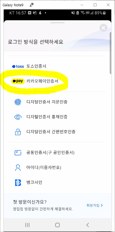 SC제일은행 카카오페이 인증서 로그인