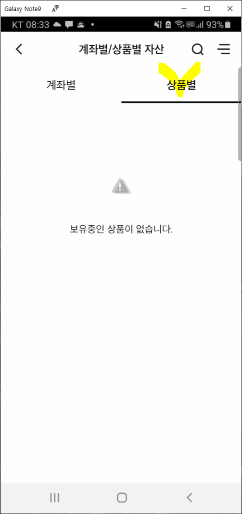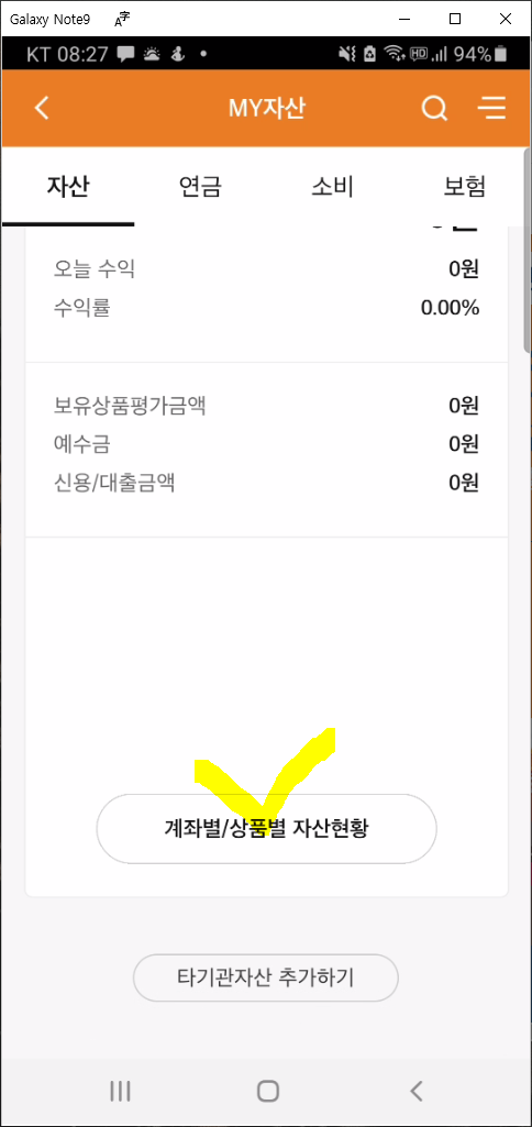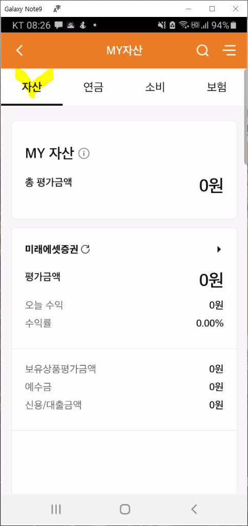 로그인이 완료되면 최초 화면은MY자산이라는 화면이 보이네요. 최초의 상단 메뉴는 "자산"으로 선택되어 있습니다.