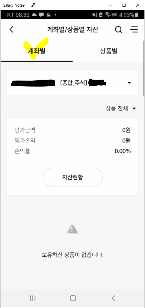 미래에셋증권 계좌별/상품별 자산현황
