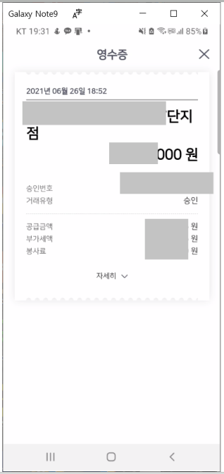 - 결제처리가 끝나면 영수증과 함께 결제내역을 확인하시면 됩니다.