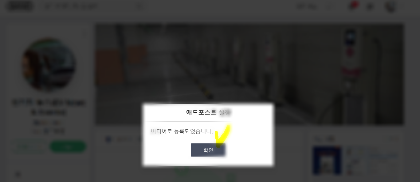 상기의 애드포스트 설정 팝업(Pop-up) 화면이 보이면 아래에 있는 확인 버튼을 클릭합니다.