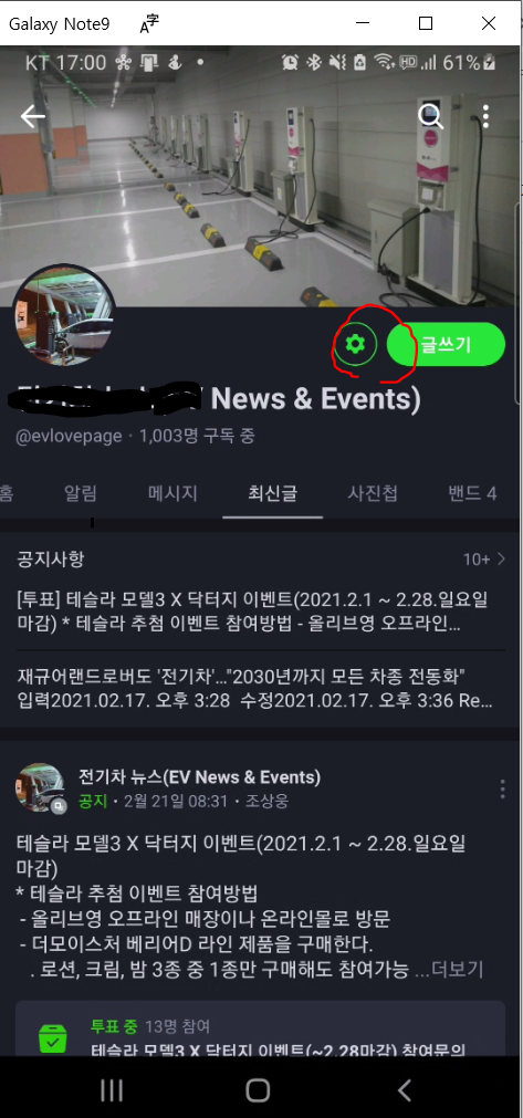 제가 운영하는 밴드 리스트들 중에서 밴드 페이지를 선택해서 들어가보겠습니다.