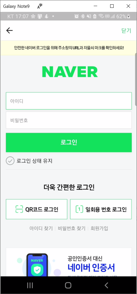 아 이건 뭐죠? 모바일앱에서 네이버 애드포스트 로그인 화면으로 연결되는데 화면이 PC에서 보는 PC 웹용 화면으로 연결되는 것 같습니다.