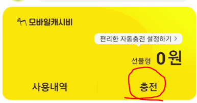 ※ 모바일 캐시비 충전 수단
