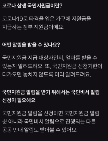 코로나 상생 국민지원금에 대해서 알림을 받기 위해서는 국민비서 알림 신청이 필요합니다.