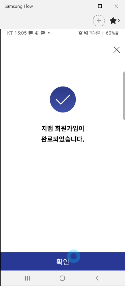- 지맵 회원가입 완료 --> 확인 클릭