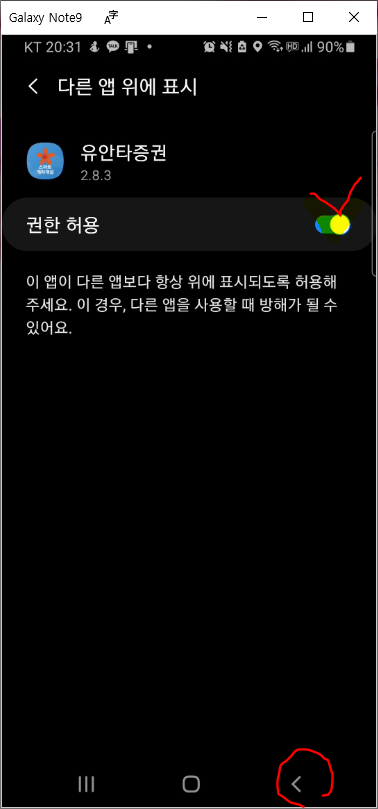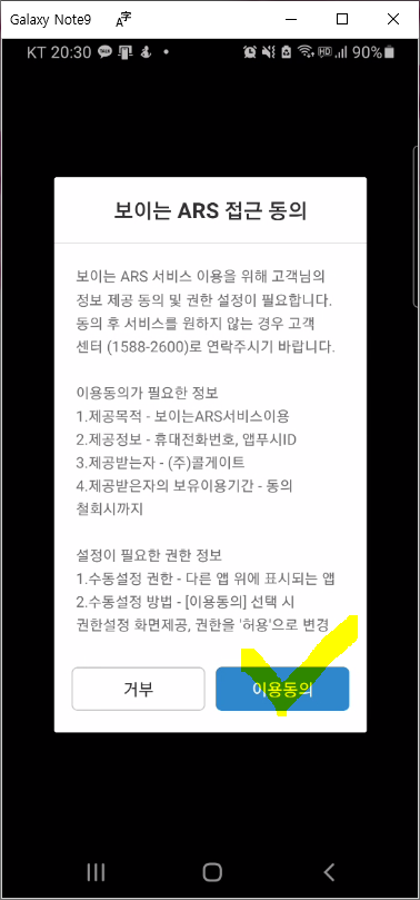 최초의 앱 사용시 아래와 같이 접근동의, 권한 허용을 차례로 해줍니다. 권한허용은 슬라이드를 우측으로 밀어 설정해주시고 아래에 "<" 요렇게 생긴 아이콘을 클릭해서 설정 후 돌아가시면 됩니다.