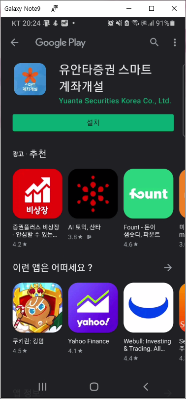 앱마켓 구글플레이_유안타증권 모바일 앱 설치