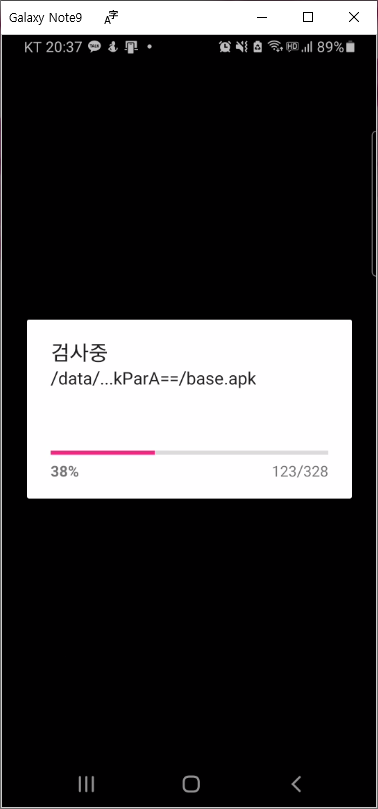 기기 액세스 허용을 통해 마지막으로 검사중이란 화면으로 바뀌면서 진행(%)화면이 보이더니 완료됩니다.