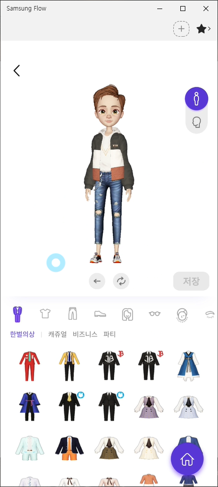 먼저 나의 아바타를 클릭하면 아바타 꾸미기로 들어갑니다. 의상과 헤어, 안경과 같은 악세사리 등으로 꾸며 보시기 바랍니다. 착용한 후 저장 버튼을 누르면 됩니다.