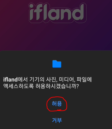 이프랜드 앱을 열기하면 나오는 ifland 앱 접근권한 안내를 보고 확인을 클릭합니다.