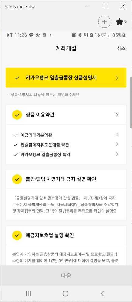 - 카카오 뱅크 입출금통장 상품설명서 --> 선택과 확인