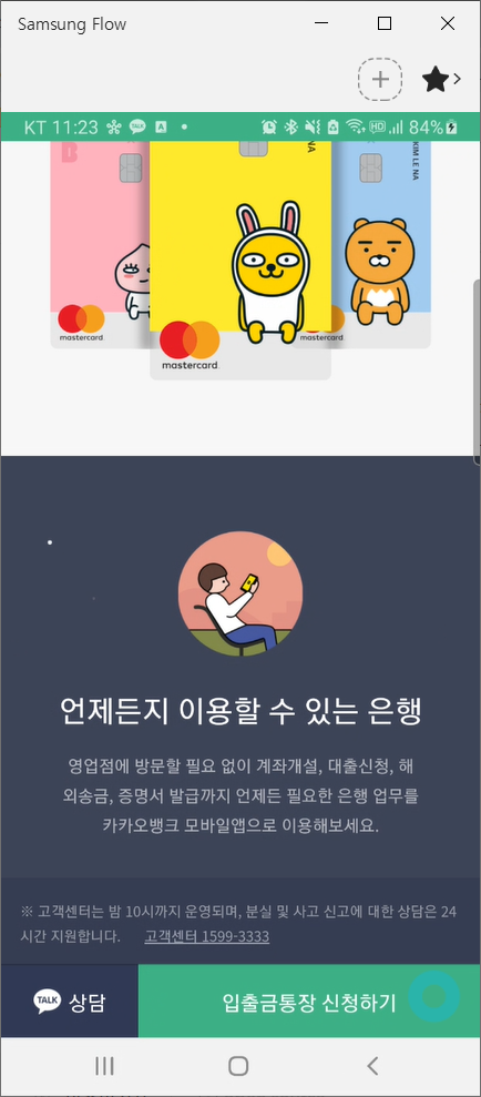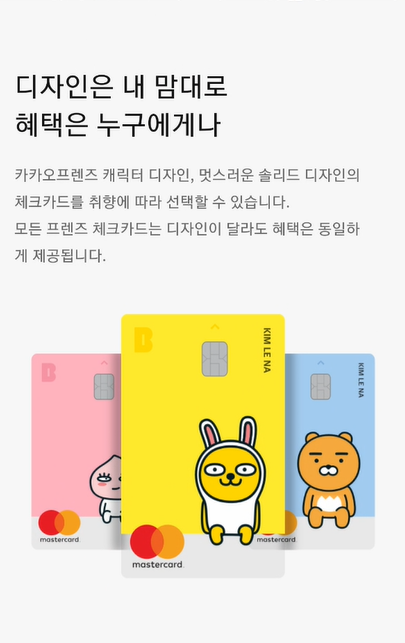 - 체크카드 디자인은 취향에 따라 선택 가능.(카카오프렌즈 캐릭터 디자인)