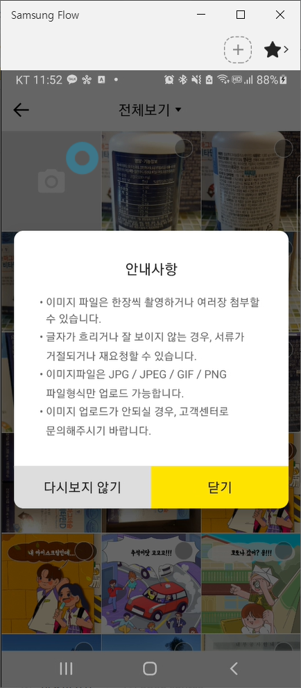 촬영한 사진들이 선택되면 선택완료를 눌러주시고 "다음" 버튼이 이제야 활성화되면 바로 눌러주세요.