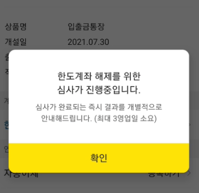 지금까지 카카오뱅크 입출금통장 만들려다 한도 계좌 해제 신청 먼저 하는 방법에 대해 공유드렸습니다. 사실 오늘 모임통장으로 사용할 입출금통장을 개설하려다 한도 계좌를 헤제 신청해야 새로 입출금계좌 개설이 가능하다는 사실을 알았습니다. 그럼 언제나 간편하고 행복한 스마트 뱅킹 생활되시길 기원합니다.