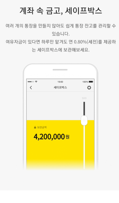 - 계좌 안에 금고에 해당되는 세이프박스를 만들 수 있음.(세전 연 0.8.%)