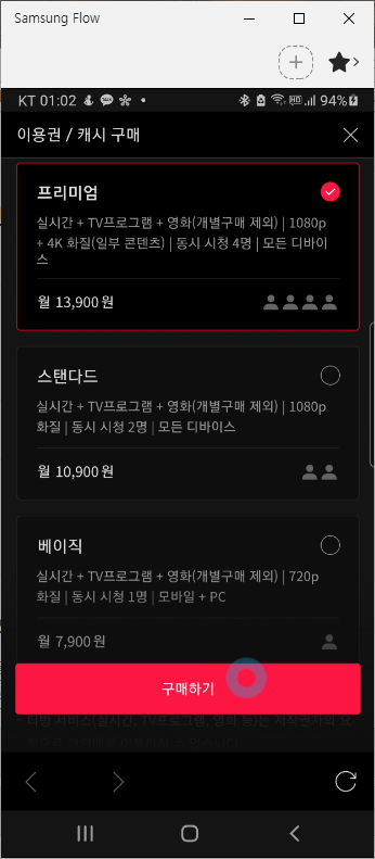 2. 티빙 캐시 구매