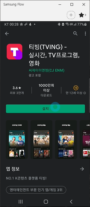티빙 TVING 실시간 TV프로그램 영화 모바일 앱 설치