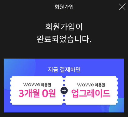 PASS 앱으로 본인 인증이 끝나면 여기까지의 과정으로 웨이브 회원가입은 완료됩니다.