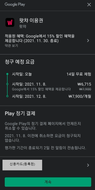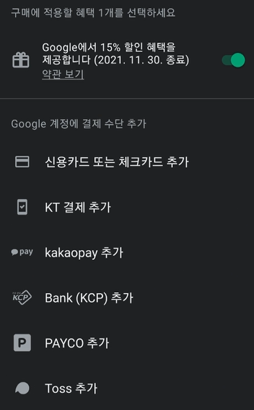 현재 구글에서 15% 할인 혜택을 제공하고 있습니다만 2021년 11월 30일 종료 예정입니다. 기간 내에 해당하시는 경우는 사용해보시는 것도 좋겠습니다.