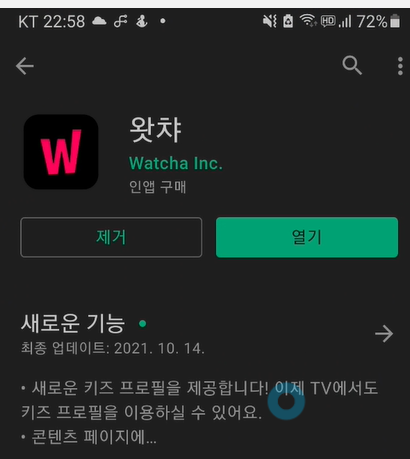 왓챠를 구글 플레이나 애플 앱스토어에서 다운로드하여 설치합니다. 설치 버튼이 열기로 바뀌면 바로 눌러서 앱을 시작하시면 됩니다.