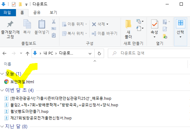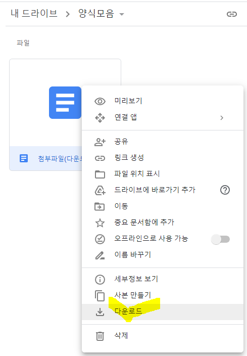 생성된 구글 문서를 다운로드하면 좀 전에 구글 이메일에서 첨부파일 다운로드된 위치와 동일한 위치에 파일이 다운되는 것을 확인할 수 있습니다.