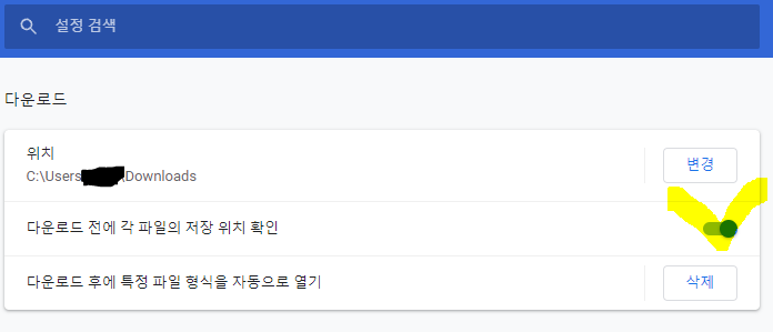 3. 구글 크롬 다운로드 설정 변경 : 다운로드 전에 각 파일의 저장 위치 확인