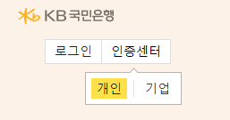 kb국민은행 인증센터(개인)의 상단 메뉴는 다음과 같이 구분되어 있습니다.
