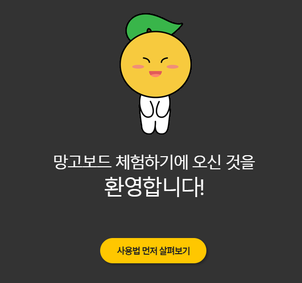 망고보드 홈페이지에 처음 접속하는 분들은 추측 상단에 체험하기를 눌러 간단한 사용법을 먼저 살펴보시는 것도 좋을 긋 합니다.