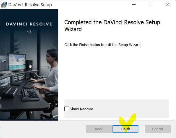 Davinci Resolve Setup wizard 완료 후 마무리 과정