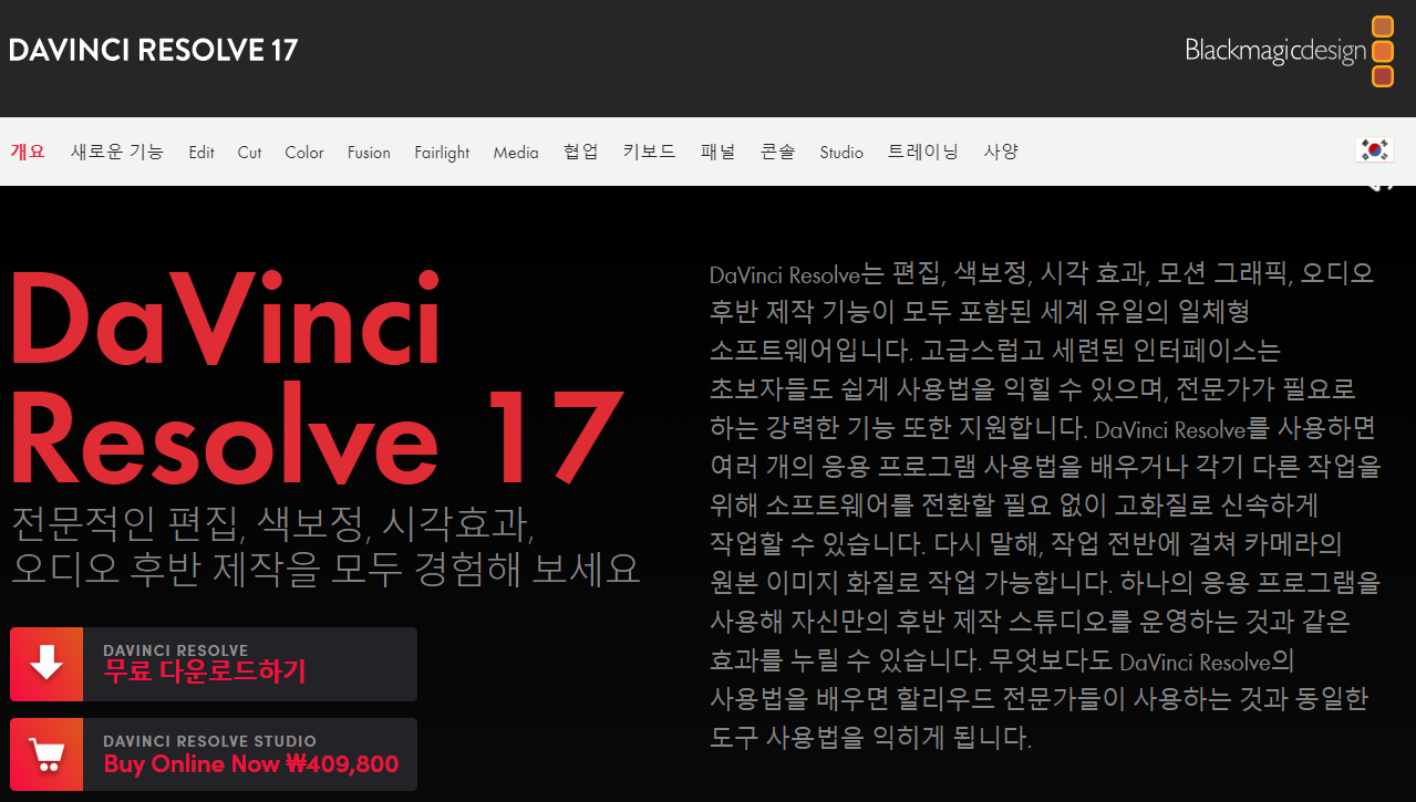 - 다빈치 리졸브 스튜디오 DaVinci Resolve Studio \409,800 (최신 가격은 홈페이지 확인!)