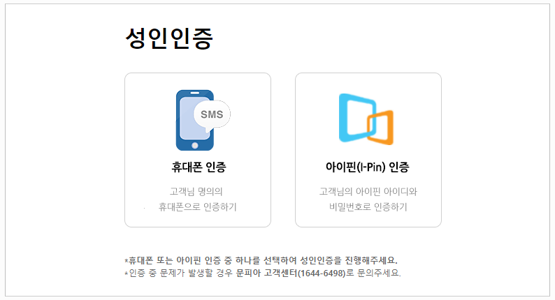 문피아 약관 동의 후에는 성인인증을 거쳐야 합니다. 휴대폰 또는 아이핀으로 인증이 가능한데 저는 휴대폰 인증이 좀 더 간편할 것 같아서 선택하고 PASS 앱을 통해 인증 확인을 완료하였습니다.(PASS 말고 문자 인증도 가능함)