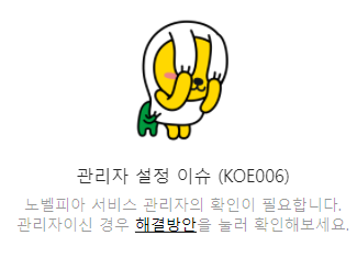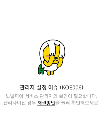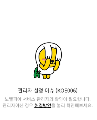 노트북에서 노벨피아를 카카오 ID로 가입하는 것이 문제가 있으니 노트북은 포기하고 이제는 핸드폰 크롬 브라우저로 가입을 시도해보겠습니다. 그러나 이것도 관리자 설정 이슈라는 것이 동일하게 발생하네요.