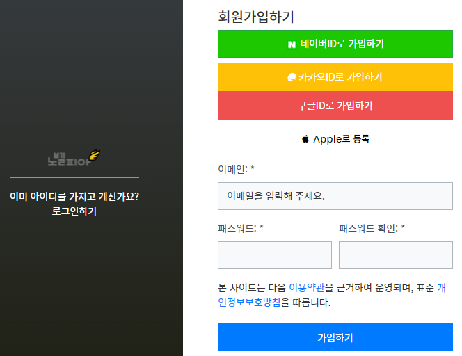 노벨피아 이메일 패스워드로 가입하기
