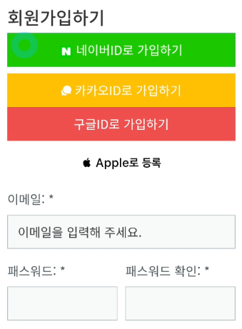 네이버, 카카오, 구글, 애플 등의 간편 가입을 할 수 있는 회원 가입하기 화면에서 카카오 ID로 가입하기를 눌러줍니다. 카카오 계정 아이디, 패스워드를 입력하고 로그인 버튼을 클릭하세요.