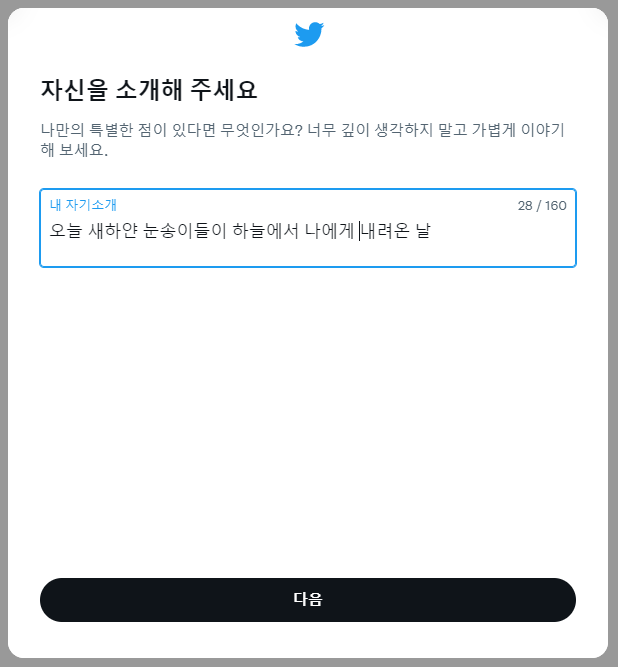 다음은 트위터에서 자신을 알릴 "자기 소개" 내용입니다. 간단하면서도 명확하게 자신을 잘 알릴 수 있는 내용으로 작성하세요. 시적이거나 감성적인 문구로 채우셔도 무방합니다.
