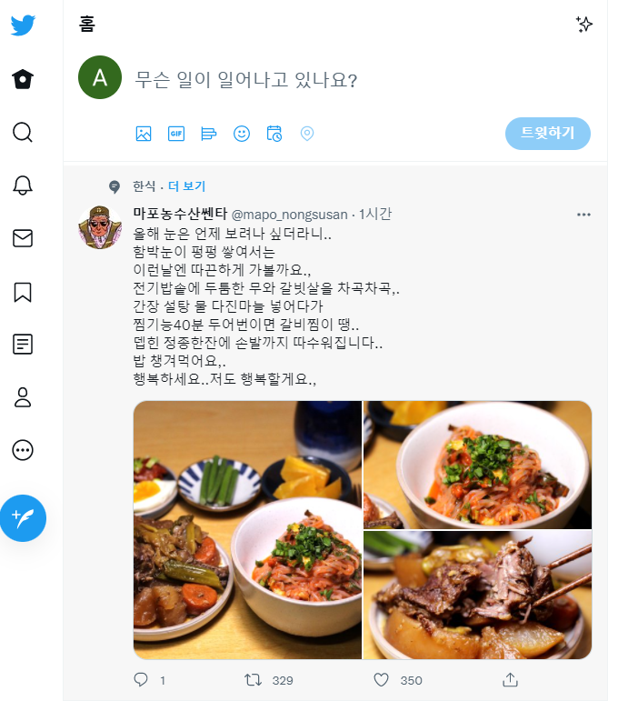 이제 트위터를 추가로 만들어 본인의 새로운 캐릭터에 맞게 서비스 이용을 시작할 수 있게 되었습니다. 오늘은 앱이 아이나 PC용 웹 홈페이지를 이용했기 때문에 트위터 좌측에 보이는 아이콘들을 홈, 탐색하기, 알림, 쪽지 등을 하나씩 눌러보면서 앞으로 어떻게 사용해나갈지를 다시 한번 생각해보는 시간이 될 것 같네요.