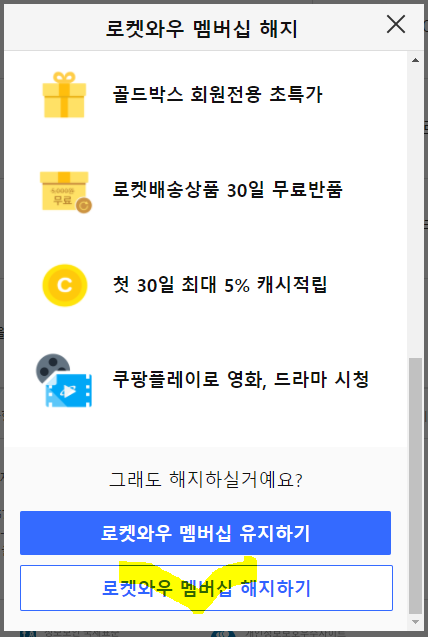 - 쿠팡 PC 웹 홈페이지에서 와우 멤버십 해지하기