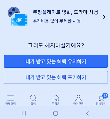 - 쿠팡 모바일 앱에서 와우 멤버십 해지하기